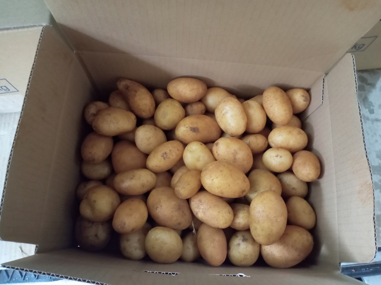 畑で採れたてのできるだけ綺麗なジャガイモを箱詰めしていますが、収穫の際に皮が少し破けたり多少傷のあるものがあります